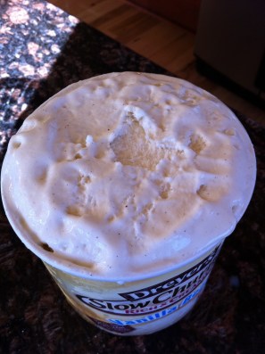 4. I substituted Dreyer’s Slow Churned Rich & Creamy Vanilla Bean ice cream (you know, to be healthy). However, the Dreyer’s came in a 1 1/4 quart size, so I may have undone some of the “healthy” by eating a decent portion of the 1/4 quart leftover. It’s okay, though; I went for a run today.